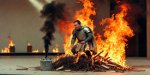Tout à coup, après avoir aspergé le sol avec un bidon de gas-oil à 2,50 euros le litre ( encore ces foutus arabes) il crame en quelques secondes devant le pompier de service complètement bourré .